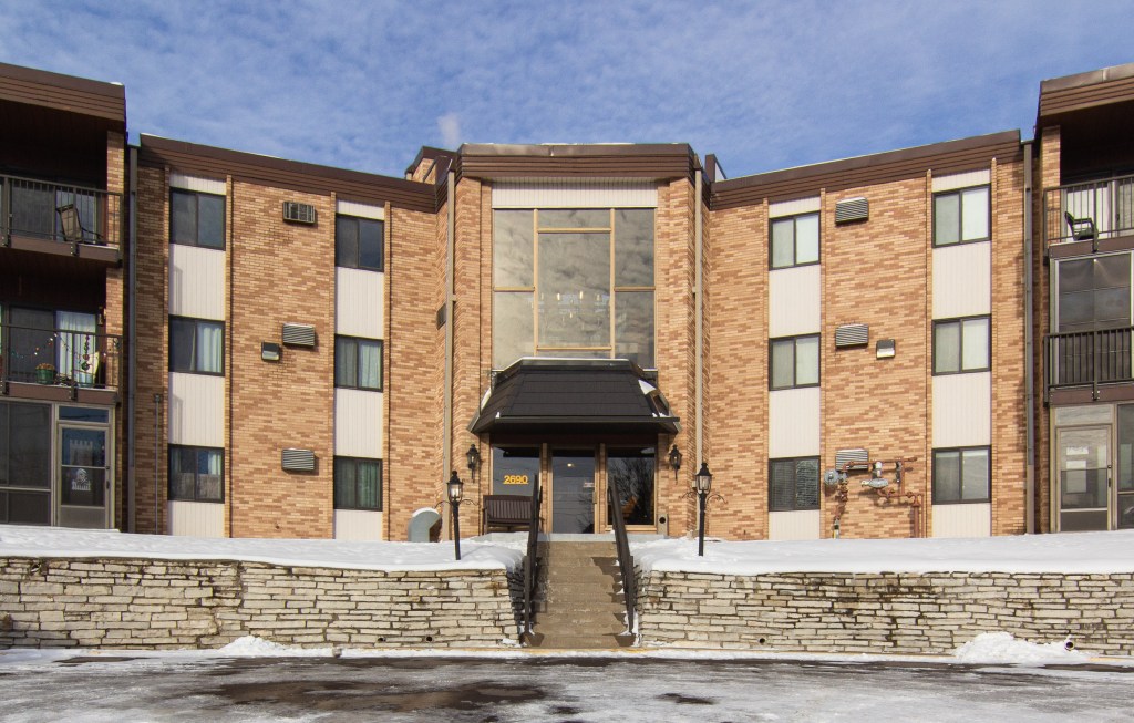Fantastic 3rd floor unit in one of the best locations in the complex. Many features and updates including: Brand new carpeting and fresh neutral painting throughout. New kitchen floor. Sliding door to deck and with privacy and a view that overlooks the common grounds on the backside of the building. Two bedrooms. Two full bathrooms. Heated underground parking garage. Same ownership for 25-years. Numerous association amenities include: indoor pool, exercise room, sauna, car wash area, sport court gym, game room, community room, plentiful off-street parking, and a guest suite available. Note there is an additional entrance to the building on the back offering covered ramp access to the main floor of the building. Association fee also includes heat and internet service. A best value buy in an excellent Roseville location! Close to Central Park, shopping, recreation, and much more.